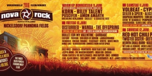 Kevesebb mint egy hónap van hátra a Nova Rock Fesztiválig! Június 9-12-ig a rock zene uralkodik Pannonia Fieldsen. Többek között olyan zenekarok adnak koncertet, mint a Red Hot Chili Peppers, Billy Talent, Korn, Deftones, Twisted Sisters, Disturbed, NOFX, Cypress Hill, Wanda, Amon Amarth, csak hogy a nagyobbakat soroljuk.