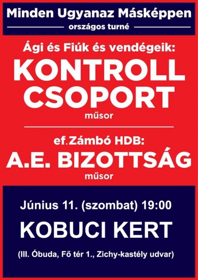 szerző: Pjotr”Minden Ugyanaz Másképpen” - Kontroll Csoport és A.E. Bizottság 2016. június 11. (szombat) 19.00 Kobuci Kert (BP.III. Óbuda, Fő tér 1., Zichy Kastély udvara)