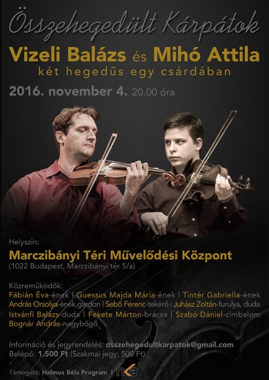 Magyar, székely, cigány, szerb, román és szlovák népzenét ad elő közös, budapesti koncertjén Vizeli Balázs és Mihó Attila hegedűművész. Mester és tanítványa november 4-én a Marczibányi Téri Művelődési Központban lép fel, és az est egyik vendége a Nemzet Művésze, a Kossuth-díjas tekerőlantos, Sebő Ferenc lesz.
