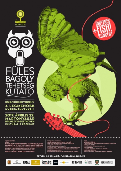 Április 3-ig lehet jelentkezni a fesztiválfellépéseket, sajtómegjelenéseket, előzenekarozásokat és stúdiózást kínáló Fülesbagoly Tehetségkutatóra. A nagyszabású könnyűzenei verseny döntőjét április 22-én tartják Martonvásáron, a Brunszvik-Beethoven Kulturális Központban, ahol a nap végén a FISH! ingyenes koncertet ad.