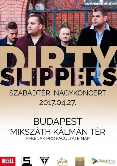 Tehát, április 27-én, csütörtökön 17:00 után a Dirty Slippers első budapesti szabadtéri nagykoncertjére várnak mindenkit a Mikszáth Kálmán térre. Mindenkinek ajánljuk aki már időben el akarja kezdeni a hétvégi bulit, remek tavaszi hangulatban egy pazar helyszínen!