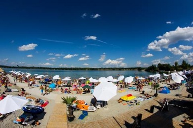 Szentendre felé, Budakalásznál, a 11-es főút jobboldalán található, méreteiben egyedülálló Lupa-tavat eddig is a kristálytiszta vize és a türkizkék színe miatt kedvelték, akik a tiltás ellenére lejártak oda, vállalva a nomád körülményeket és a veszélyeket. Azóta - a vízminőség kivételével - szinte minden megváltozott. Egy rövid tavalyi próbaüzem után ugyanis hatalmas beruházással tették komfortossá és biztonságossá a területet a fürödni és sportolni vágyók számára. Megnégyszerezték a strandolásra alkalmas partszakaszokat, valamint az egész területet - a tengerpartokat is lepipáló - fehér homokkal töltötték fel. Bár, aki nem látja a saját szemével, annak elképzelni is nehéz, de itt valóban egy Európa szerte is egyedülálló a „karibi beachek” pálmafás hangulatát ide varázsló, 2,5 km-es luxus strand, és a hozzá kapcsolódó változatos szolgáltatások nyújtanak majd kikapcsolódást a nyári napokban. “Budapest egy olyan fürdőváros, ami termálvizekben ugyan rendkívül gazdag, de sajnos nincs természetes vízpartú fürdőhelye. Ez a hatalmas, fehérhomokos és türkizkék vízű tó, az új szolgáltatásaival, változatos sport-, és gasztronómiai kínálatával, egyedi strandbútorzatával, a világ legszebb tengerpartjaival is versenyre kel” – mesélte Gerendai.