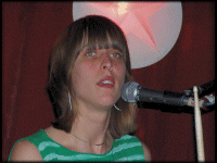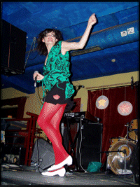 A Dynasty Handbag a The Roofies-ból, illetve a Dynasty nevű csajbanda (itt zenél a Numbers dobosa, Indra Dunis is) soraiból ismert Jibz Cameron egyszemélyes karaoke-produkciója. Jó Jibz megjelenésre leginkább egy topis alkoholista háziasszonyt idézett, aki valami szűk sikátorok szabdalta városnegyedben leszalad egy üveg ginért a vegyesboltba, és úgy gondolja, hogy „oda így is jó lesz”. Vagy ha úgy jobban tetszik, egy marilynebb Manson-ként is el lehet képzelni, halvány Robert Smith-beütéssel. Kitaposott, lapos sarkú, fehér körömcipő, piros harisnya, zöld-fekete szakadt-kinőtt kombiné, torzonborz frizura, elcsúszott rúzs és (a táskákat takarandó) napszemüveg - ezek után ugye mindenki sejti, hogy nem valami Helloween-klón muzsikával szembesültek az egybegyűltek. A borzasztóan hangosan üvöltő, primitív, előre rögzített alapokra erőltetett fahangon kántálta a világról alkotott véleményét - a csúcs az volt, amikor Budapest szépségeit kezdte ecsetelni, egybekötve annak eldanászásával, hogy Amerika micsoda bolond egy hely, de persze nem az ő számára, aki fehérneműben táncol egész nap és tesz az egészre... (Remélem jól emlékszem és nagyjából pontosan zanzásítottam a pompás kínrímekbe szedett lírát.) Közben a legrosszabb ripacsot is megszégyenítő vonaglást és grimaszolást produkált (aki el akarja képzelni, nézze meg a fotókat és fantáziálja hozzá annak a tizenhatodik hatványát, amit Dave Gahan művel a Depeche Mode It´s No Good klipjében), nonpluszultraként pedig az átkötő szövegek is előre-rögzítettek voltak és Jibz-ünk richtig rosszul tátogta el őket - láttam már egy-két bizarr és gúnyos produkciót, de ez bizony mindent mosott.