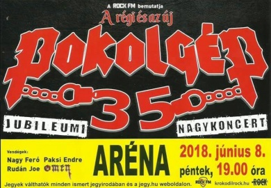 Mint nemrég mi is közzétettük, négy év után ismét jubileumi koncertet ad a Pokolgép zenekar, az új és a régi felállás főszereplésével. A június 8-ára, az Arénába meghirdetett eseményre már elkezdődött a jegyárusítás. A jegyek - szektortól függően - 5.990, 7.990, 9.990, 11.990, 13.990, 15.990 Ft árban kaphatóka jegy.hu oldalán.