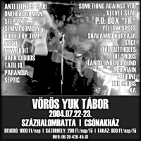 Július 22-én és 23-án a Százhalombattai Csónakház (mely a Fogoly utca legvégén található) ad helyet a Vörös Yuk Tábor elnevezésű kétnapos fesztiválnak, amelynek keretében 22 magyar és egy francia zenekar ad koncertet. A zenei programok mellett a délelőtti és a kora délutáni órákban a zenekarok közti focibajnokság zajlik majd, lesz bográcsozás, vegan ételek és a helyszínen meglátogathatjátok a Green Peace és a Fauna info sátrát is. A napi belépő ára 1000 Ft, egy napra egy fő részére sátorhelyet 200 Ft-ért, faházat 800 Ft-ért lehet bérelni, a részletes koncertmenü pedig a következőképpen alakul: