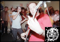Mint már utaltam rá, ez a csapat nem csak zenei értelemben gátlástalan, s az emlegetett megrökönyödöttség sem csak a daloknak volt köszönhető. Tán nem meglepő, hogy effajta zenét nem feltétlenül hétköznapi arcok csinálnak - a Phoenix Bodies esetében azonban senki ne gondoljon tömeggyilkosokra, vagy megszállott vademberekre: a srácok inkább néhány osztálykiránduláson lévő, infantilis gimnazistára emlékeztettek. A két gitáros meglehetősen hagyományos módon, hangszerével kaszálva, hadonászva gyalulta-facsarta az elképesztő témákat, ezen már senki nem lepődik meg, viszont a másik két tag tett a nem mindennapos vizuális „élményről”. Az énekes bokszeralsóban üvöltötte-tombolta végig a koncertet, de még így is jobban fel volt öltözve, mint dobos kollégája, aki a dalok között gondoskodott róla, hogy az esetleg figyelmetlenkedő jelenlévőknek is tudomására jusson: nem különösebben szégyellős. A szünetekben székéről felemelkedve riszálta magát, a dobverőkkel emelgette a heréit, közben pedig le nem hervadt volna az arcáról a farkasvigyor... A prímet így sem ő vitte, hanem a mikrofonnál álló gatyás barátunk, aki két sikítás között az előrébb álló férfinézőknek igyekezett hatalmasnál hatalmasabb cuppanósokat osztogatni... Te jó ég! Meglehetősen éles kontrasztot képzett ez a morózusan tébolyult zenével, de ami rendhagyó, az legyen tényleg minden tekintetben az, nemdebár?