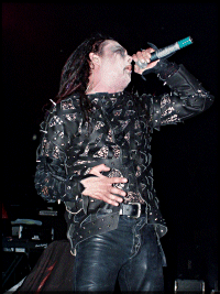Illetve, hogy egész pontos legyek, az énekes Dani semennyire sem vette komolyan a dolgot, azon túl, hogy a dalokban éppen úgy ezer hangon szólalt meg, mint ahogyan azt a lemezeken megszokhattuk tőle. Ez persze már önmagában is hatalmas teljesítmény (szerintem nem sokan tudnák olyan változatossággal végigacsarkodni mondjuk az egyik legjobb számukat, a Cruelty Brought Thee Orchids-et, mint Dani tette ezen a koncerten), de amellett így sem lehet elmenni, hogy a viselkedésével inkább egy glam vagy rock and roll bandába illett volna a srác, mint a Cradle-be. Meglehetősen ittas (vagy nem is akarom tudni, milyen) állapotban lépett a pódiumra, s ennek megfelelően magáról teljesen megfeledkezve minden egyes szám után kitartóan Make some fucking noise”-ozott vagy két percet, aztán pedig bejelentette, hogy a következő dalt Báthory Erzsébetnek küldi. Ha éppen nem volt énekelnivalója, a mikrofonnal próbált zsonglőrködni, de a harminc próbálkozásból csak egyszer (igaz, elsőre) sikerült elkapnia, úgyhogy huszonkilencszer irgalmatlan kopogás és ropogás volt az eredmény. Egy idő után aztán már nem is kísérletezett, inkább jól odavágta a mikrofont a földhöz, a színpad hátuljához, a saját fejéhez, ahova éppen sikerült. Magát sem kímélte amúgy: ha éppen olyan kedve támadt, hát bizony fejjel rohant neki a hangfalak egyikének. Hmmm Persze hazudnék, ha azt mondanám, nem volt szórakoztató, mert akadt ugyan néhány tényleg elvetélt próbálkozása (mondjuk amikor egy zavaros történetet próbált elmesélni valami sztriptízbárról meg 500 font elvesztéséről), de én bizony sírva röhögtem, amikor például bekonferálta a Her Ghost in the Fog-ot a következőképpen: Her Ghost in the Fucking Semi-Final!”