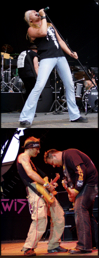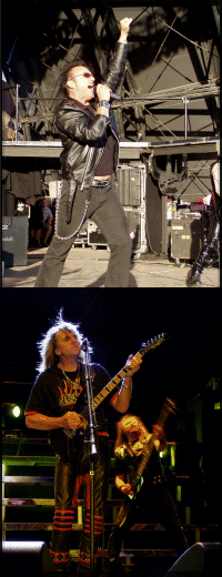 A soros Hollywood Rose egy Guns n Roses tribute-banda, és én egyből leszögezem, hogy soha nem voltam nagy Gunner, még akkor sem, amikor mindenki az volt. Ettől függetlenül úgy gondolom, hogy a Guns előtt tisztelegni, ezeket a dalokat játszani igenis érdemes, hiszen megannyi olyan nótát írt ez a banda, ami ott van az egyetemes rocktörténet legfontosabbjai között. A Hollywood Rose pedig mondhatni küldetésének megfelelően - pont ezek közül válogatott ezen a péntek délutánon: olyan nóták kerültek elő, mint a Night Train, a Sweet Child O Mine, a Welcome to the Jungle, a Dont Cry, a Paradise City, a You Could Be Mine, de persze elhangzott a Knockin on Heavens Door is. Ez az együttes az a fajta tribute-zenekar, amely külsőségeiben is igyekszik megidézni a példaképeket, amit én igazán pozitívnak tartok, de azért lehet még csinosítani a produkció ezen részén is, csakúgy, mint a dalok előadásán (még több lendülettel és nagyobb precizitással). A Hollywood Rose még nem egy Kiss Forever Band vagy egy Iron Maidnem, de azért a Guns kedvelői nyugodtan tehetnek velük egy próbát. A Dirty Dance zenéje nem vág az én ízlésembe, de kötözködni a világ minden kincséért sem fogok, mert profizmusban nem volt hiány, s a színpad előtt csápolókra pillantva az is egyértelmű volt, hogy a hangulatnak sincs híján a koncert. Egyértelmű, hogy jól csinálják, amit csinálnak, tényleg hatalmas feeling rejlik a produkciójukban (még ha gyűlölöm is ezt a szót), az meg teljesen más tészta és a magam baja, hogy ettől még nem vagyok oda értük (nem vagyok az az igazi baby-zős arc, na). Ez a fajta muzsika szerintem inkább a Wigwam-ba való, ugyanakkor az is igaz, hogy a Twisted Sister elé illett a Dirty Dance rock and roll-ja. Mint arra már utaltam, igen nagy volt a sikerük is, ami szintén az utóbbi megállapítást támasztja alá. Mindenestre én már tűkön ülve vártam a nagy attrakciót, s lassan el is érkezett az idő, hogy átadják a helyet minden dőre anyaszomorítók legdőrébbjeinek, amivel párhuzamosan én is kezdtem újra felvillanyozódni.
