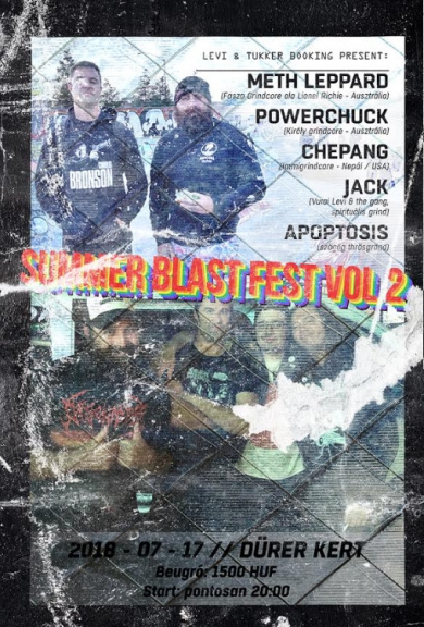 szerző: PjotrSUMMER BLAST FEST VOL 2. Meth Leppard (AUS); POWERCHUCK (AUS); Chepang (NEP/USA); Jack; Apoptosis 2018. július 17. DÜRER KERT