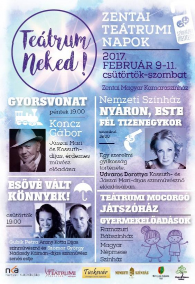 Öt napon keresztül szórakoztatják magyar nyelvű színházi programok a vajdasági magyar közönséget a III. Teátrum Neked! Fesztiválon, 2019. február 20-24-ig.