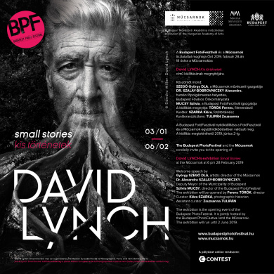 Magyarország legnagyobb fotográfiai eseménye, a BUDAPEST FOTÓFESZTIVÁL igazi különlegességgel és egyben közép-európai premierrel nyitja meg 2019-es rendezvénysorozatát február 28-án a MŰCSARNOKBAN. A harmadik éve megrendezett Fesztivál nyitókiállítását nem más, mint David Lynch, az amerikai függetlenfilm élő legendája, rendező, forgatókönyvíró, festő és zenész jegyzi.