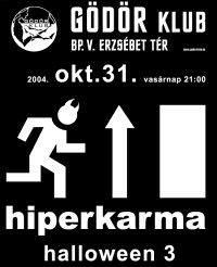 Amikor a szellemvilág és a mi világunk között a legvékonyabb a válaszfal, akkor a Hiperkarma zenekar mindenkit egy óriási buliba hív. A harmadjára megrendezett bulin a zenekar különlegesen hosszú műsorral készül, olyan számok is elhangzanak majd, amelyeket ezidáig koncerten nem játszottak. Természetesen az alkalomhoz illő díszlet és hangulat várható, a Hiperkarma koncerten vendégek is feltűnnek, Németh Juci és Szekeres András személyében. A Hiperkarma előtt a dunaújvárosi Jazzékiel, a koncert után Dj. Onoff zenél. Ja, és az időpont természetesen október 31, vasárnap este (Másnap munka- és iskolaszünet).