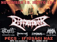 A svéd death metal rajongói számára kihagyhatatlan koncertnek ígérkezik a Dismember novemberi fellépése. A rendezvény pontosan november 15-én, Pécsen kerül megrendezésre. Remélhetőleg a hétköznapi időpont és a vidékre való leutazás ellenére sokan megtekintik a Dismembert, mert egy nagy múltú és kiváló banda.