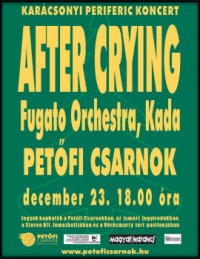 Az est harmadik fellépője, az idén tizennyolcadik évébe lépő After Crying zenekar és alkotóműhely munkássága egyedülálló a hazai palettán, s a nemzetközi mezőnyben is ritkaságszámba megy. Klasszikusan képzett alkotóinak művészi célkitűzése, hogy olyan alkotásokat hozzanak létre, amelyek a mai zenei köznyelv elemeit használják, tehát sokak számára érthetőek, mégis képesek komoly témákról mély tartalmat magas művészi igénnyel megfogalmazni. Egyfajta „korszerű komolyzene” ez, amely egyszerre kíván saját kora közönségének és az örökkévalóságnak szólni. A hangszerpark koncertváltozatban a klasszikus hangszerektől (cselló, trombita, zongora) a rockzene standard hangszerein keresztül a modern elektronikai eszközök használatáig terjed. Stúdiólemezeiken az akusztikus kamarafelállástól, szólódaraboktól a XXI. századi szimfonikus hangszerelésen keresztül az elektronikus megszólalásokig a klasszikus és modern kompozíciós és hangszerelési eljárások rengeteg fajtáját tartalmazza a paletta. Mindezeket szerves dramaturgiai egységbe foglalja a zenekar, amelyben a dalformától a hosszú instrumentális kompozíciókig minden forma a neki legmegfelelőbb tartalommal párosul.