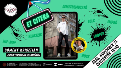 Dömény Krisztián Junior Prima -és Mester M-Díjas citeraművész munkásságára mindig is a kísérletezés volt jellemző. Egyszerre tanult klasszikus zeneszerzést és népzenét, egyszerre járt táncházakba és hip-hop koncertekre. És ma, egyszerre dolgozik együtt népzenészekkel és rock- illetve rap előadókkal, valamint egy különlegesen izgalmas elektronikus zenei eszközzel, az úgynevezett looperrel. Az “Et citera” koncerten pedig pont a csodálatos looperé lesz a főszerep. A citera “elektromosított” változatából saját dallamok, valamint hip-hop és alternatív rockzenei feldolgozások bújnak elő. Talán ez a koncert lesz a művész eddigi “legszemélyesebb” megszólalása, hiszen a looperrel Krisztián saját magával folytatott párbeszédeinek lehetünk tanúi.