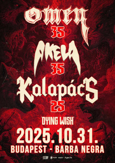 Október 31-én a hazai metal színtér patinás zenekarai közül három jubiláló csapattal, valamint egy vendég fellépővel egy minifesztiválnak ad helyet a fővárosi Barba Negra. Az Omen / Akela / Kalapács triumvirátusnak köszönhetően egy klasszikus heavy / power / thrash metal ünnep - vagy fogalmazhatunk úgy is, hogy ősmetal szörnyek találkozója - van készülőben, amelyen a kemény zene rajongói az elmúlt évtizedekben született, és idővel méltán közismert és kedvelt rockhimnuszokat elsőkézből, maguktól az alkotóktól hallhatják egy közös bulin, természetesen a legfrissebb szerzeményekről sem elfeledkezve. Mindehhez a szintén már bőven nem tinédzserkorú - jövőre 30 éves - Dying Wish heavy / melodeath műsora adja meg az alaphangulatot.