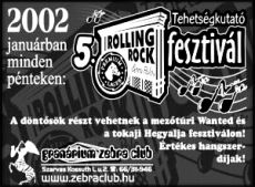 szerző: Tobias5. Rolling Rock Tehetségkutató Fesztivál 2002 január 11-február 8, Zebraklub, Szarvas
