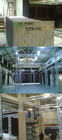 A hétvége folyamán 15 db, egyenként 10 tonnás kamion érkezett Budapestre és elkezdődött a beépítés. 30 fős nemzetközi stáb napi 12 órában azon dolgozik, hogy minden a helyére kerüljön a jövő szombati nyitásra. Az első és legfontosabb feladat a Millenáris Fogadó teljes elsötétítése volt, majd következik a 300 méter hídelem, a több száz világítótestet és több kilométernyi kábel beépítése. Mindezek segítenek abban, hogy a látogatók a mesterien alkalmazott háttérzajok, zenék és a különleges megvilágítás segítségével még intenzívebben éljék át a Titanic utolsó útjának hangulatát.
