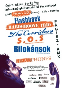 szerző: PjotrS.O.S, Corridors, Bilokánsok, Hardgroove Trio, Headphones és a Flashback a PÁGISZban 2007. november 10. Győr - PÁGISZ és ÁMK