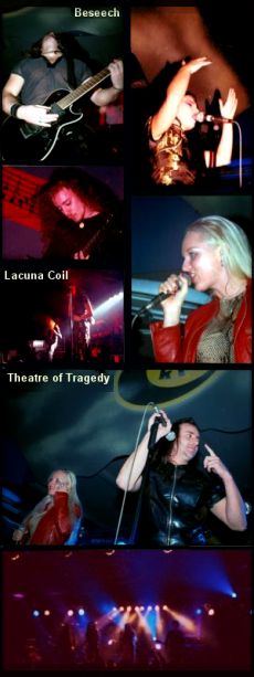 Tettünk néhány kört a műintézményben, de csak a kisteremben próbálkozó magyar bandát, a Land of Charont láttuk/hallottuk játszani - nem volt túl meggyőző Talán itthon túl sok a napfény a hiteles depresszióhoz. Végül lőállást foglaltunk a lokális nagyszínpad előtti első sorban, ugyanis befejeződött a beszerelés, és kezdetét vette a zúzás. A Theatre előtt még két előzenekar lépett fel, akikből sajnos nem készültem fel - ez hiba volt. A színpadra lépő öt hatalmas svéd hihetetlen koncertet produkált, röpke háromnegyed óra alatt teljesen izzásba hozták az addig csak lézengő, túl sűrű tömeget. A Beseech néven futó banda, tisztességes goth rockot nyomott, úgy igazán. Honlapjuk tanúsága szerint (www.beseech.com) 1992-ben alakultak, és 1995-ben adták ki első önálló albumukat. Igen kár, hogy csak háromnegyed órát játszottak: ettől a csapattól simán kitelt volna egy másfél órás koncert. A következő zenekar, a Lacuna Coil is tisztességes koncertet adott (szintén körülbelül negyven percben - na igen a szoros turné-menetrend), de Gza kollega szerint a Beseech leiskolázta őket.