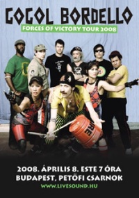 Mindegy, lépjük túl ezen (bár azért megjegyezném, hogy él egy Béla Fleck ezen a földön, a többszörös Grammy-díjas amerikai bendzsós, aki Bartók iránti tiszteletből vette fel az autentikus Béla nevet). Az tény, hogy Gogol Bordello napjaink igen meghatározó, magukat halmozottan hátrányos helyzetű gypsy punknak definiáló csapata olyan eredeti zenei keveredést hozott létre az idők folyamán, hogy attól minden jóérzésű punknak feláll a taréja. Számos nagyhírű fesztiválon játszottak már, olyan nevekkel turnéztak együtt, mint a Primus, vagy a Flogging Molly és túlvannak öt stúdiólemezen. Zenéjük félúton van Goran Bregović és a Clash között, de valószínűleg ha a Pogues-os Shane MacGowan-el kéne egy asztalhoz ülniük, nem jönnének zavarba. Koncertjeiken brecht-i hagyományokat idéznek, és büszkén nyúlnak az elektromos gitárhoz és a tangóharmonikához egyaránt. Zenéjükben jól kiegészíti egymást a kelet európai cigányzene, a jamaicai reggae, a ska, a balkáni és orosz népzene, így egy igazán eklektikus, tarkabarka, ízes, mulatós zene bontakozik ki. Mit is lehet mondani még egy olyan zenekarról, kiknek tagjai között jól megfér az izraeli az ukránnal, az orosz az etiópiaival és a floridaival? Gyúrjunk április 8.-ára, hogy testben és lélekben megerősödve alkalmasak legyünk eme eklektikájában is egységes, előremutató zene befogadására.