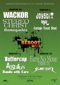 Február 26-ától keddenként ismét a zúzdáé lesz a főszerep, s ezentúl a budapesti Trafó ad majd otthont a jól bevált, Tues-Die koncertsorozatnak. A Tues-Die Reboot Party-ra keresztelt első ilyen bulit a Renegades nyitja majd két igencsak ütős csapat, a Wackor és a Stereochrist előtt.