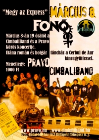 szerző: Pjotr„Megy az Express“ A CimbaliBand és a Pravo zenekar közös koncertje és táncháza a Fonó Budai Zeneházban 2008. március 8. 19:00. Fonó Budai Zeneház – Budapest (XI. Sztregova u. 3.)